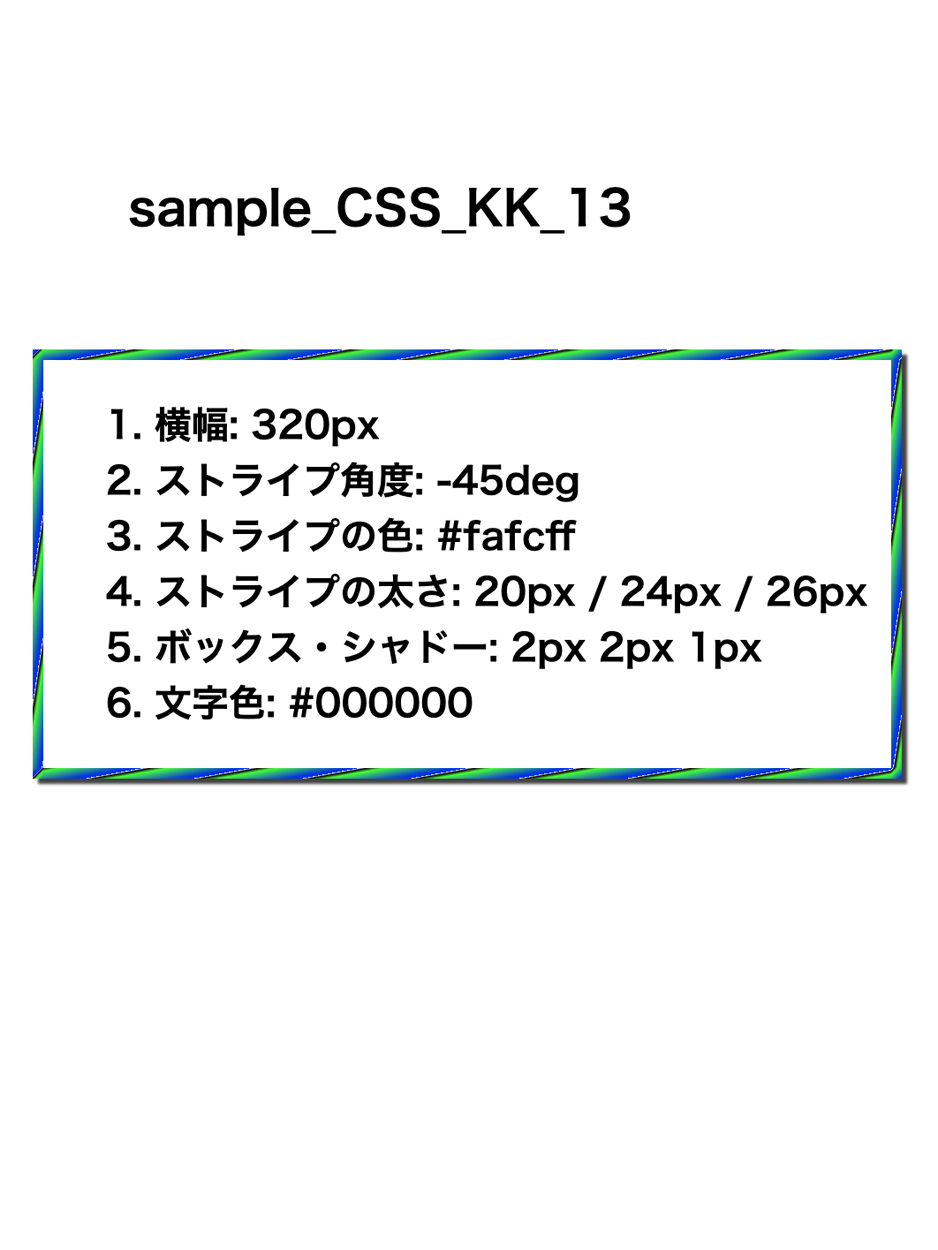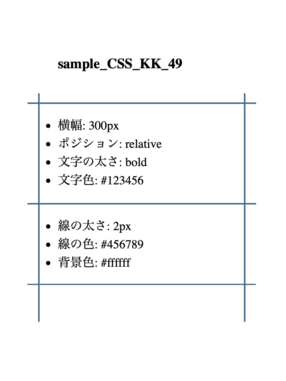 ■ CSS のいろいろな指定(線の長さ/太さ, 行の間隔など)はブラウザによって少々異なった表示になります. このサンプルは Google Chrome と Safari の両方で表示できるように値を調節し, 誤差の中間あたりを設定してあります.