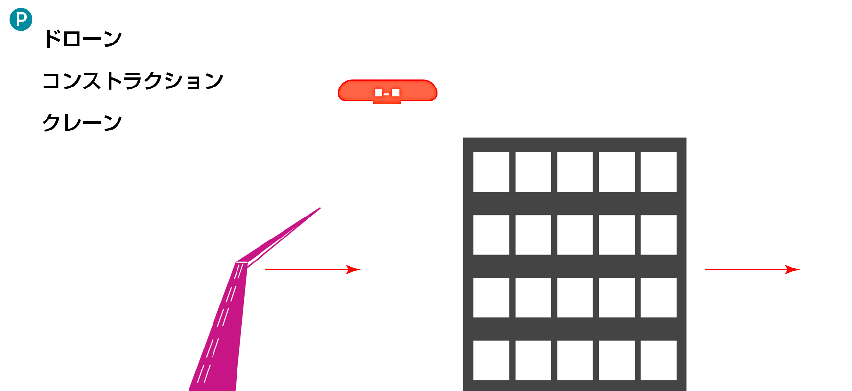 アニメーションさせるオブジェクトをドローンのように見せるには直線で移動させることです.画面の中で手前に現れるオブジェクトは移動するスピードを他のオブジェクトよりも速く設定すると良いでしょう.