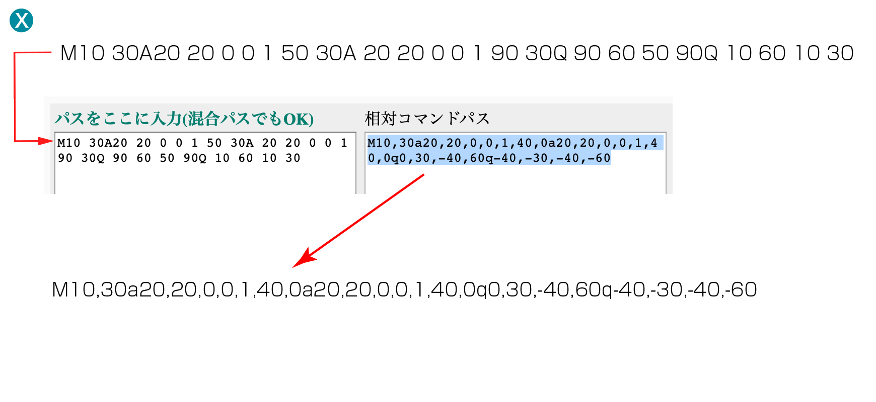 Convert to Absolute Relative を立ち上げて絶対コマンド・パスを相対コマンド・パスに変更してみましょう.コマンド・パスの値を読んでオブジェクトの形状を想像できるようになりましょう.